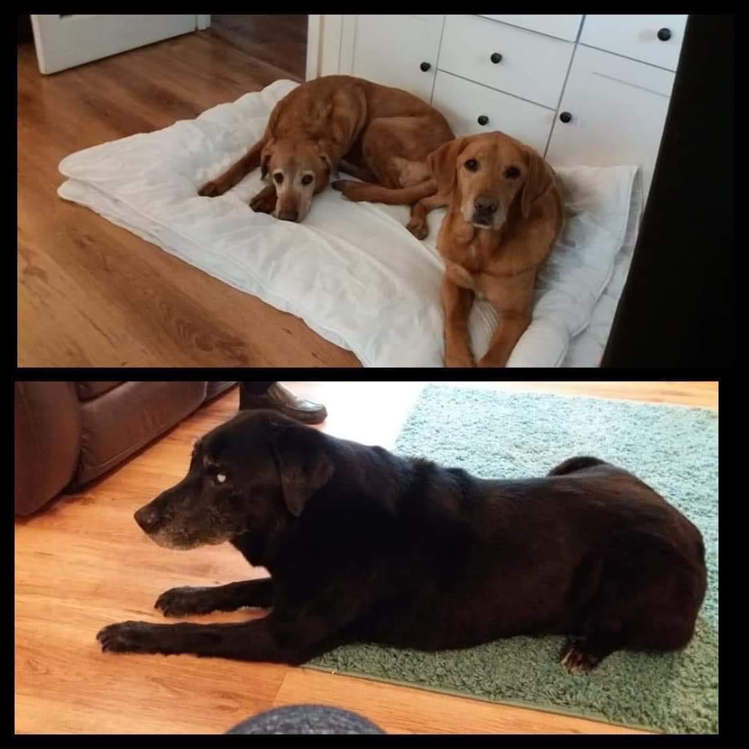 Please meet our gorgeous Trio, our latest Long Term Foster Dogs. Kasie, Ellie and Bailey Ellie and Bailey are both 11 and are fox Red. Both are quite timid. Kasie is a 12 year old black lab who has cataracts and is blind. Of the three, Kasie seems to be the most outgoing! She has lots of spirit and doesn't let her eyesight impair her lust for life. Ellie and Kasie are particularly close and although it seems like Ellie depends on Kasie, it may be that Kasie is as confident as she is because she has Ellie. It's been quite a struggle, but we are happy to announce that we have managed to rehome the 3 of them together. This was a huge achievement for our rehoming team, and we are so proud of the work they have all put in to keep these 3 together. Since moving to their new home, all three have had a mobile pamper session. They went to the vets recently for a health check. Their nails were clipped, ears treated and were weighed. They all need to gain around 7-10 kg so will be on a high protein diet. Bailey was booked in to have his teeth done. Smelling sweet, they look like different dogs. Today, the news isn't as positive. When Bailey was put under at the vets today, they were extremely shocked by the awful condition of his teeth. He had to have six teeth removed and he needs to go back for more extractions. He also has very severe gingivitis that has gone into his sinus bone. This must have been causing him much discomfort, and yet he is as sweet as can be. Today's and yesterday's vet bill was £668, £600 of which was for the dental work. We are expecting that again when he goes back. So far we have raised £1500 from your generous donations and fundraising, but Bailey's dental work will deplete most of their 'pot'. So we are once again focusing on the trio for our auction next week . (Please follow the link to our fb auction page). https://www.facebook.com/groups/1586538281583086/?ref=share We made the commitment to help them, no matter what, and they deserve to live in comfort not pain for whatever time they have left. If you don't want to bid on the auction, you can always purchase items for your dogs from our website or fb shop. Kasie, Bailey and Ellie are very fortunate to have a kind and compassionate long term foster mum who will do all she can to take the best care of them. Thank you Heather from all of us in LiNland.